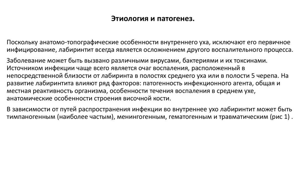 Этиология и патогенез.Поскольку анатомо-топографические особенности внутреннего уха, исключают его первичное