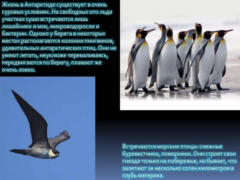 Жизнь в Антарктиде существует в оченьсуровых условиях. На свободных ото льда