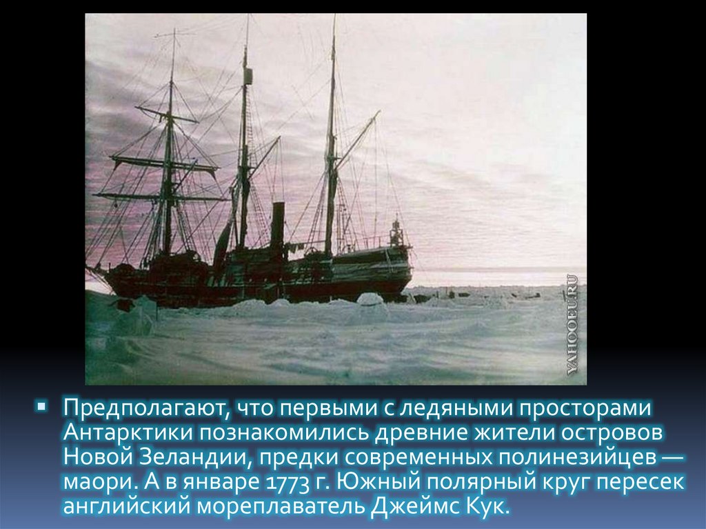 Предполагают, что первыми с ледяными просторамиАнтарктики познакомились древние жители островов