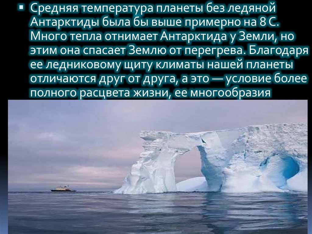 Средняя температура планеты без ледянойАнтарктиды была бы выше примерно на 8 С.