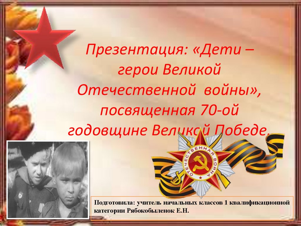1. Презентация: «Дети – герои Великой Отечественной войны», посвященная 70-ой годовщине Великой Победе.