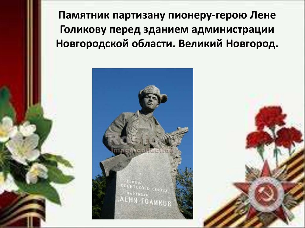 11. Памятник партизану пионеру-герою Лене Голикову перед зданием администрации Новгородской области. Великий Новгород.