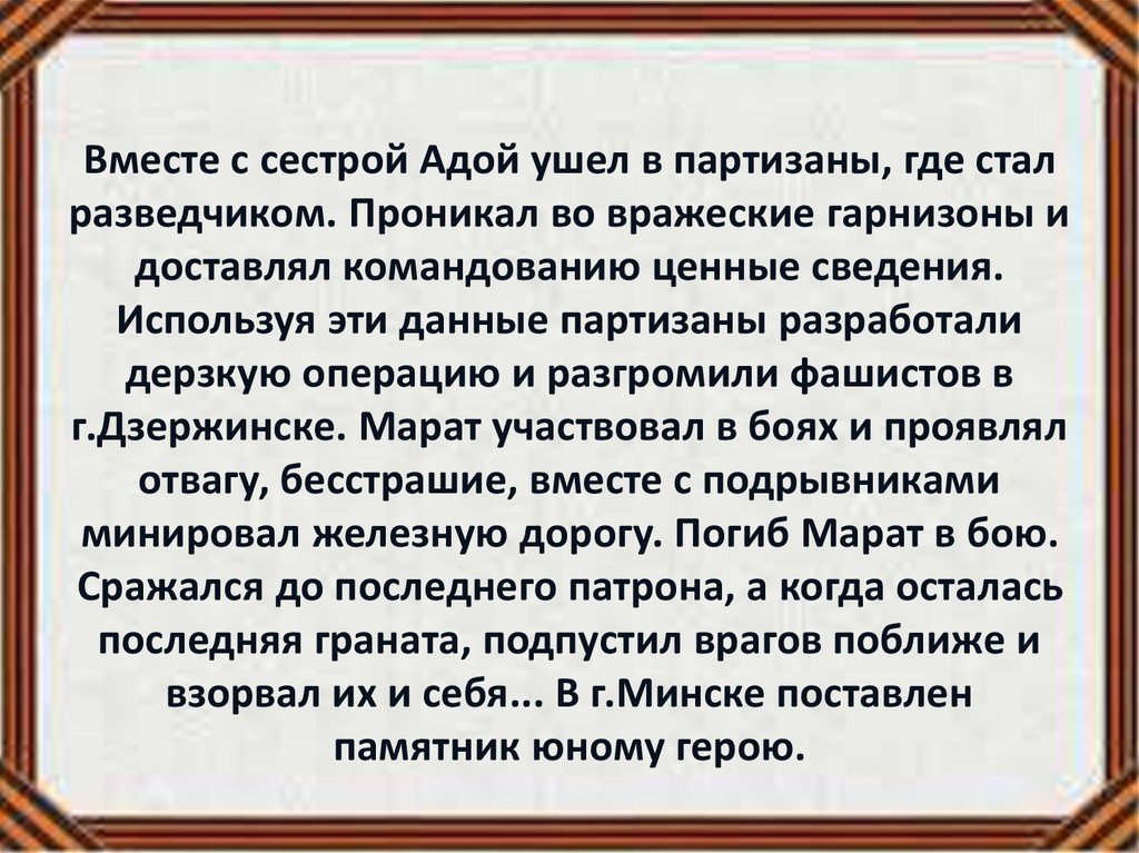 г.Дзержинске. Марат участвовал в боях и проявлял