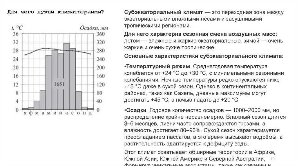 Для чего нужны климатограммы?Субэкваториальный климат — это переходная зона между