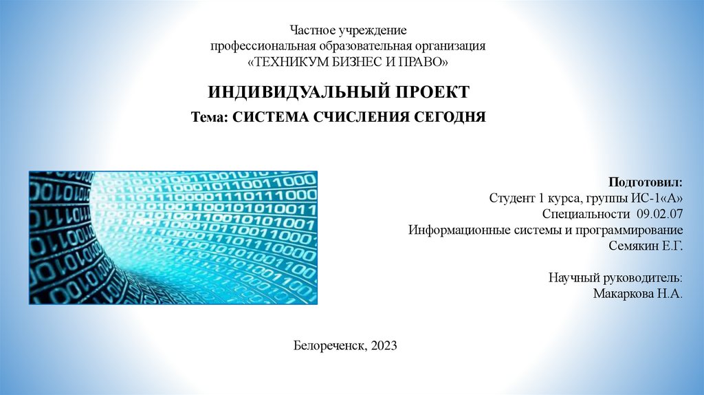 ИНДИВИДУАЛЬНЫЙ ПРОЕКТТема: СИСТЕМА СЧИСЛЕНИЯ СЕГОДНЯ