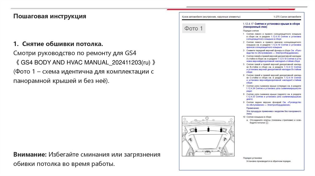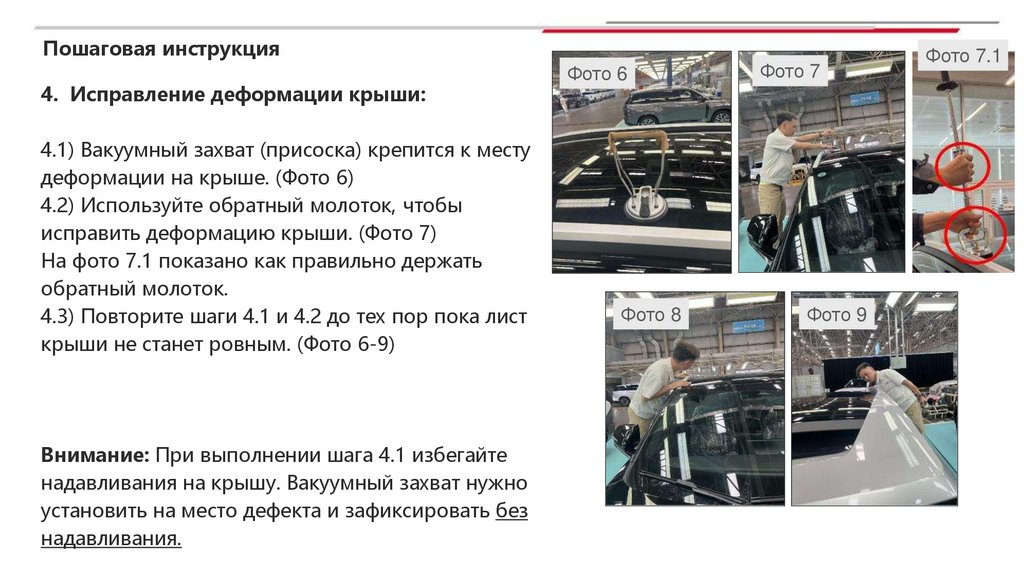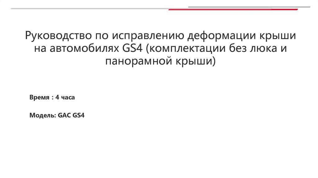 Руководство по исправлению деформации крышина автомобилях GS4 (комплектации без люка и