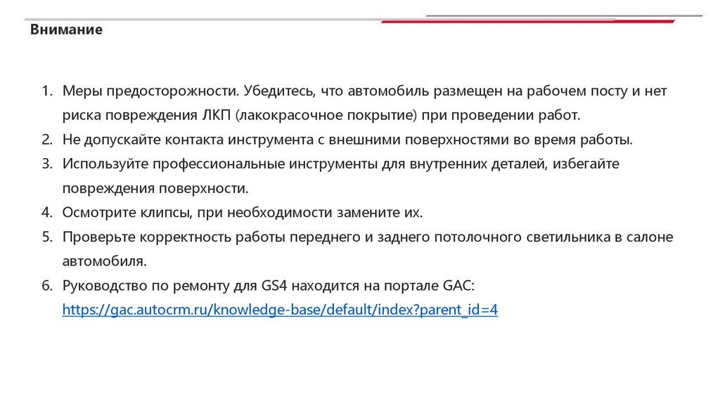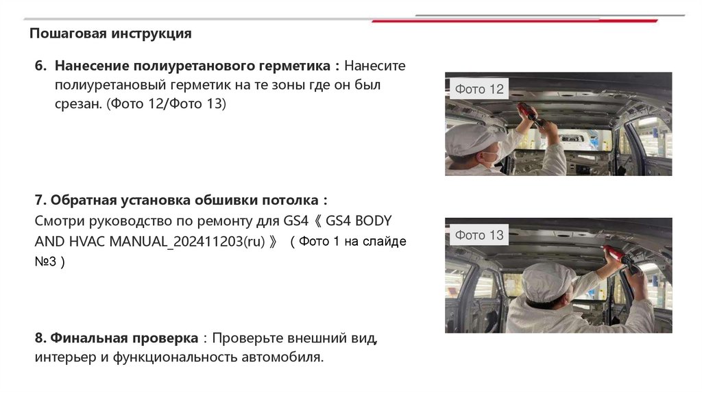 Руководство по исправлению деформации крыши на автомобилях GS4 (комплектации без люка и панорамной крыши)