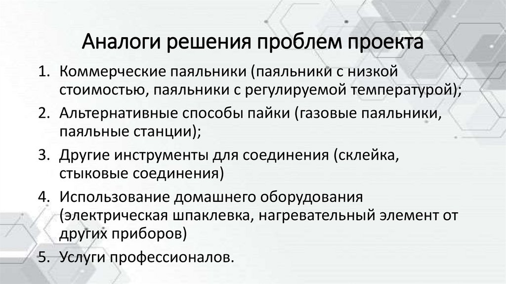Аналоги решения проблем проекта1. Коммерческие паяльники (паяльники с низкой