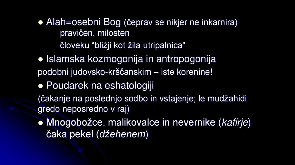 Alah=osebni Bog (čeprav se nikjer ne inkarnira)pravičen, milosten