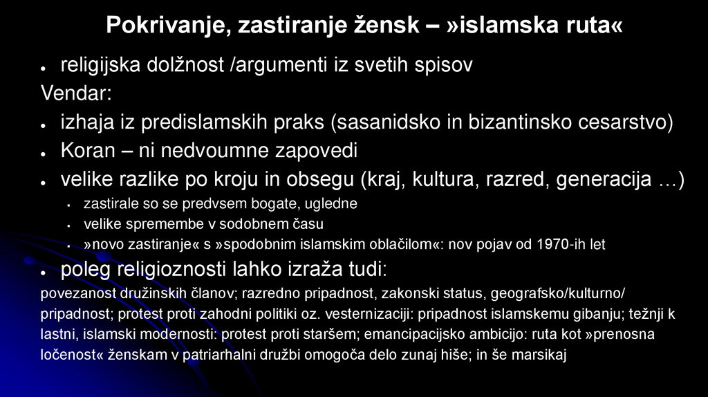 Pokrivanje, zastiranje žensk – »islamska ruta«religijska dolžnost /argumenti iz svetih spisov