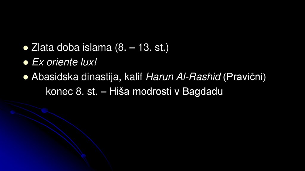 Zlata doba islama (8. – 13. st.)Ex oriente lux!