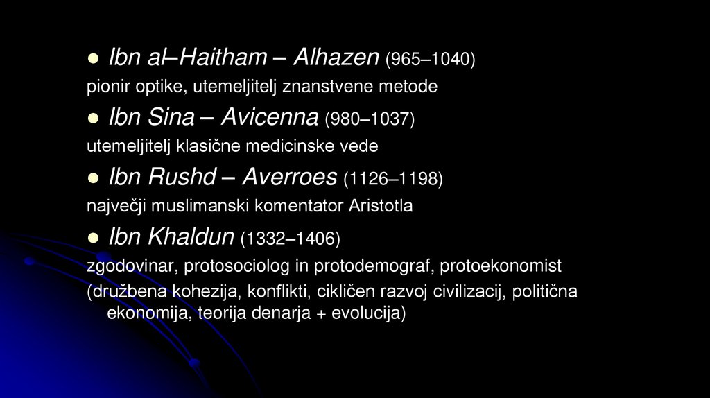 Ibn al–Haitham – Alhazen (965–1040)pionir optike, utemeljitelj znanstvene metode