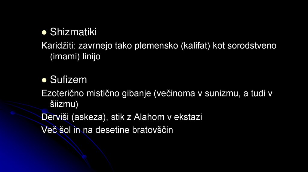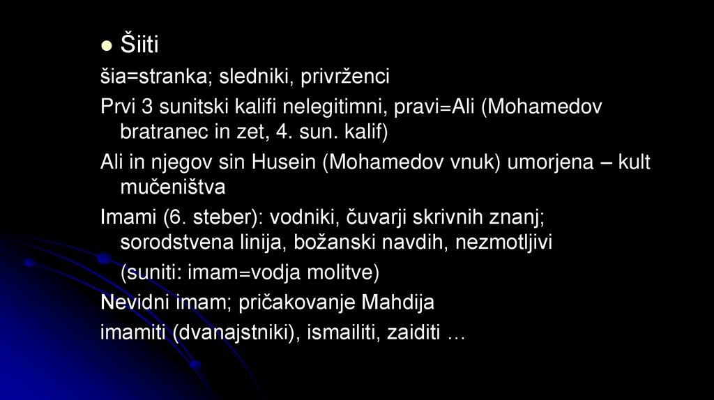 imamiti (dvanajstniki), ismailiti, zaiditi …