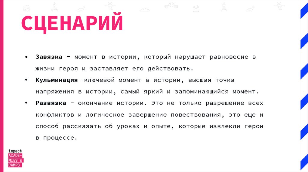 СЦЕНАРИЙЗавязка - момент в истории, который нарушает равновесие в