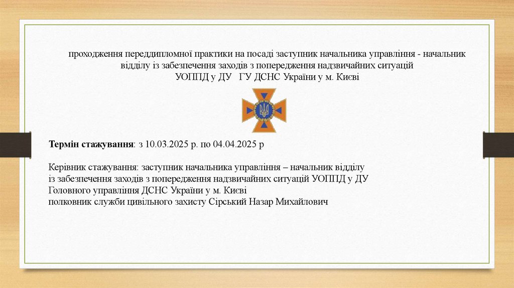 проходження переддипломної практики на посаді заступник начальника управління - начальниквідділу із забезпечення заходів з попередження надзвичайних ситуацій