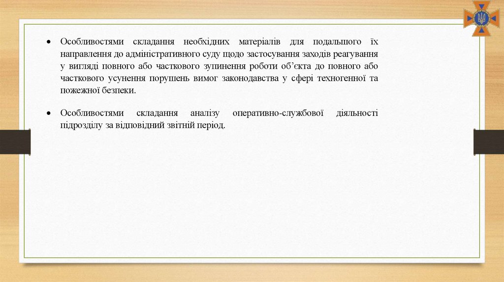 Особливостями складання необхідних матеріалів для подальшого їхнаправлення до адміністративного суду щодо застосування заходів реагування