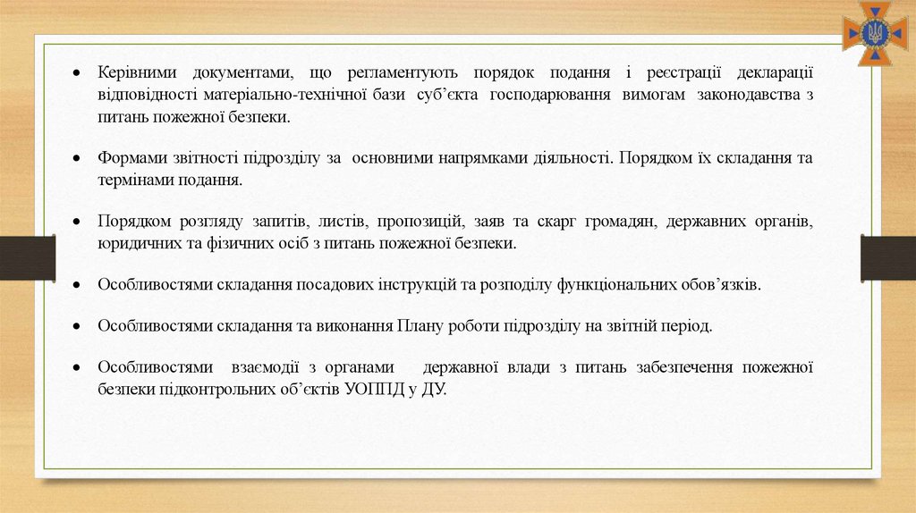 юридичних та фізичних осіб з питань пожежної безпеки.