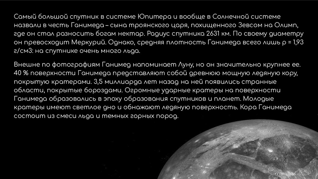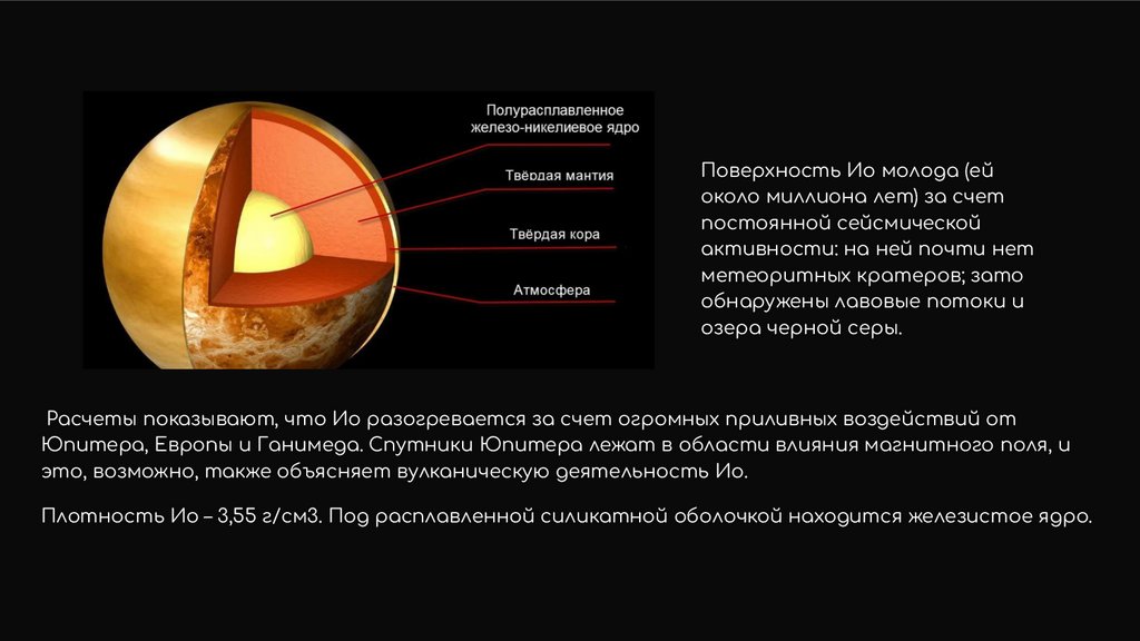 Его внутреннее строение похоже настроение юпитерианских спутников. У