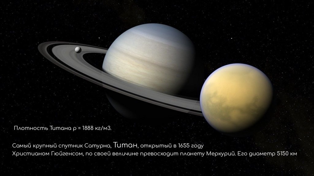Плотность Титана ρ = 1888 кг/м3.Самый крупный спутник Сатурна, Титан, открытый в 1655 году