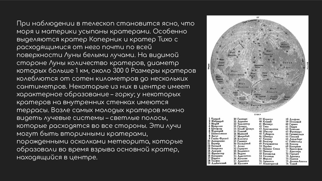При наблюдении в телескоп становится ясно, чтоморя и материки усыпаны кратерами. Особенно