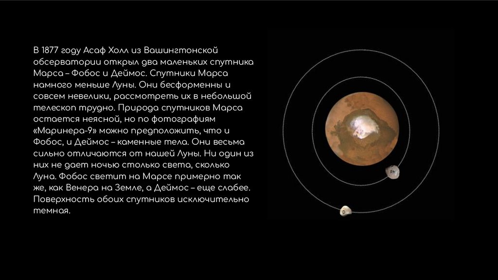 В 1877 году Асаф Холл из Вашингтонскойобсерватории открыл два маленьких спутника