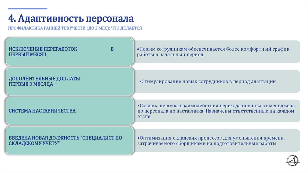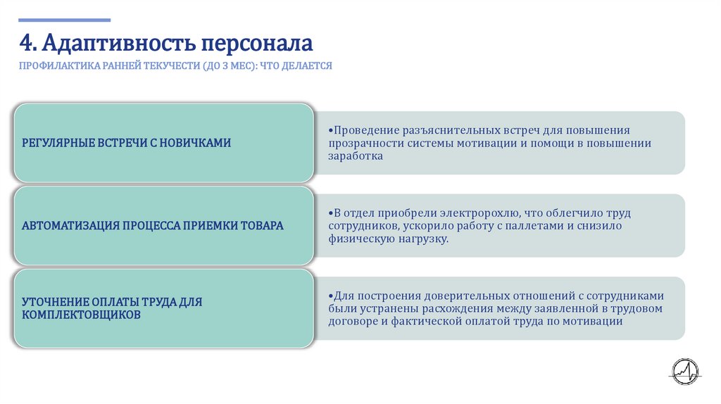 4. Адаптивность персоналаПРОФИЛАКТИКА РАННЕЙ ТЕКУЧЕСТИ (ДО 3 МЕС): ЧТО ДЕЛАЕТСЯ