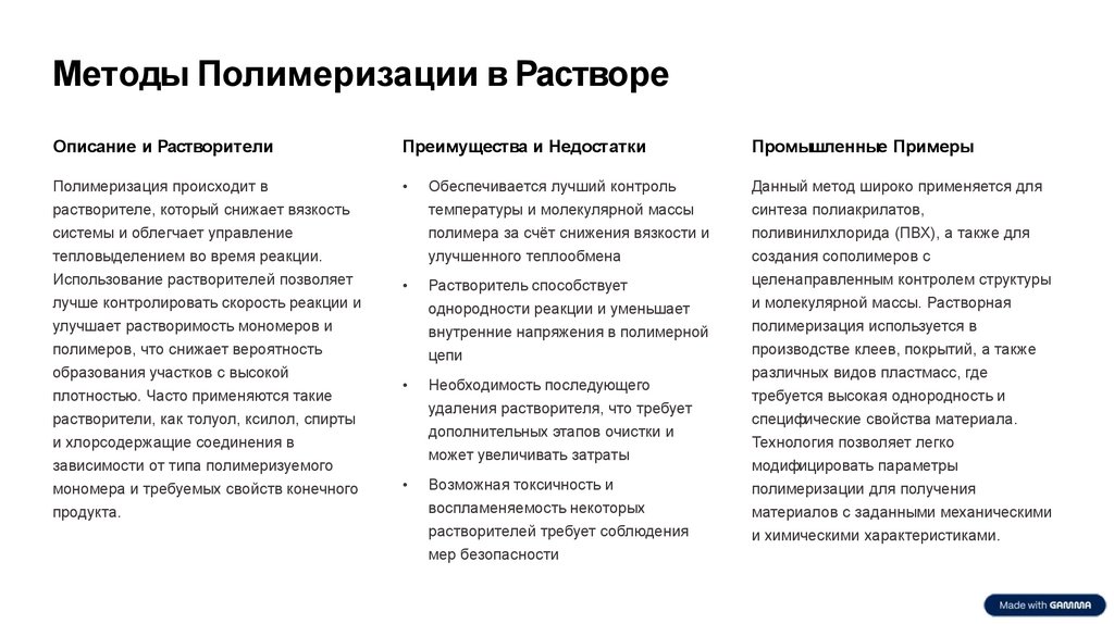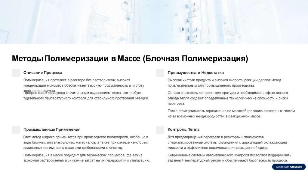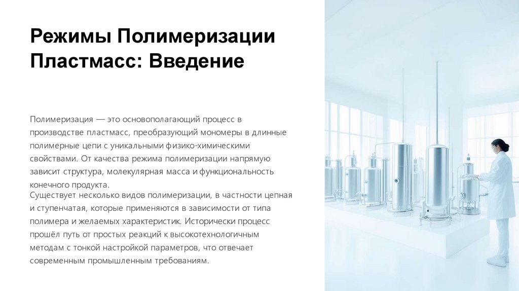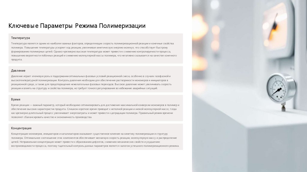 реакции и влиять на структуру и свойства полимера, но требует точного регулирования во избежание аварийных ситуаций.