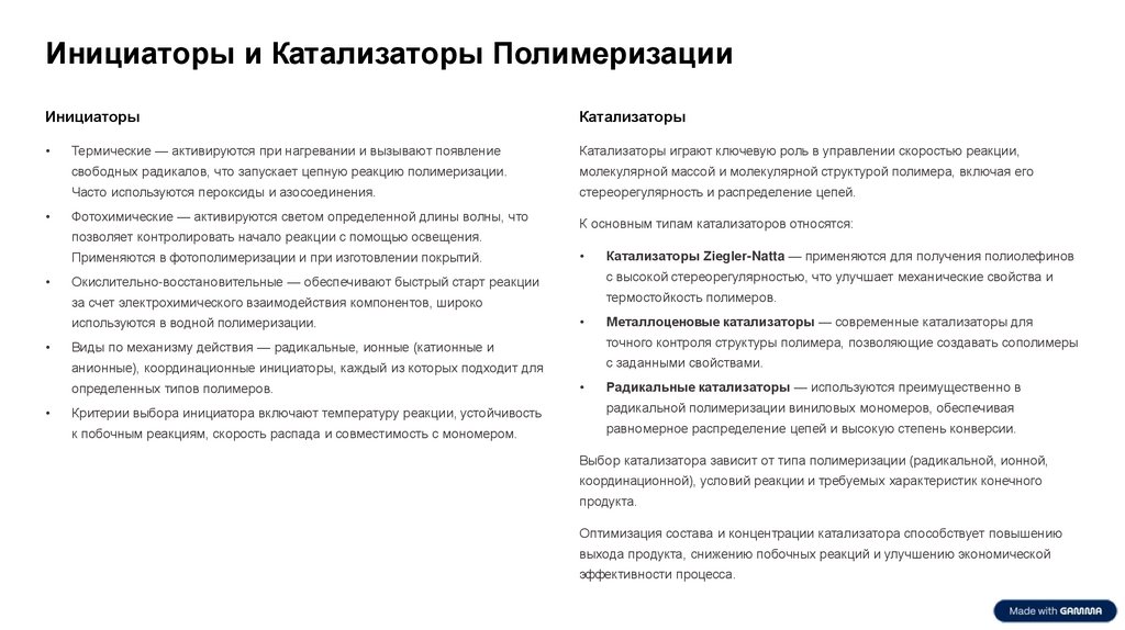 Инициаторы и Катализаторы ПолимеризацииИнициаторы
