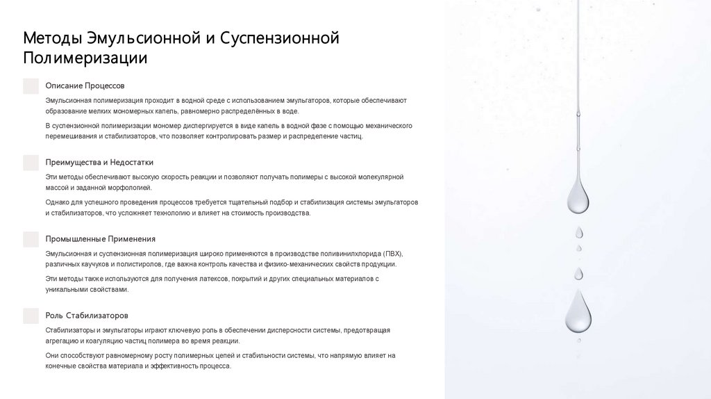 Методы Эмул ь сионной и СуспензионнойПол имеризации