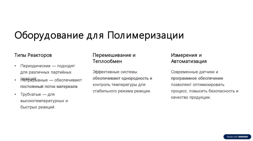 Оборудование дл я Пол имеризацииТипы Реакторов