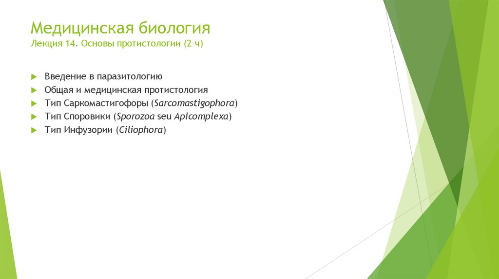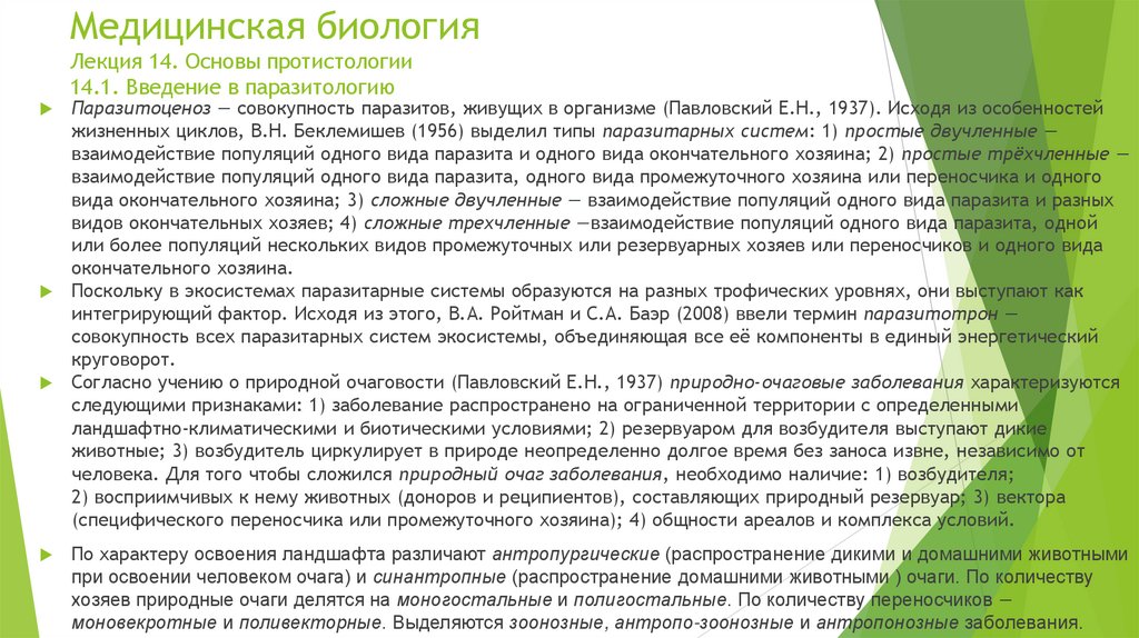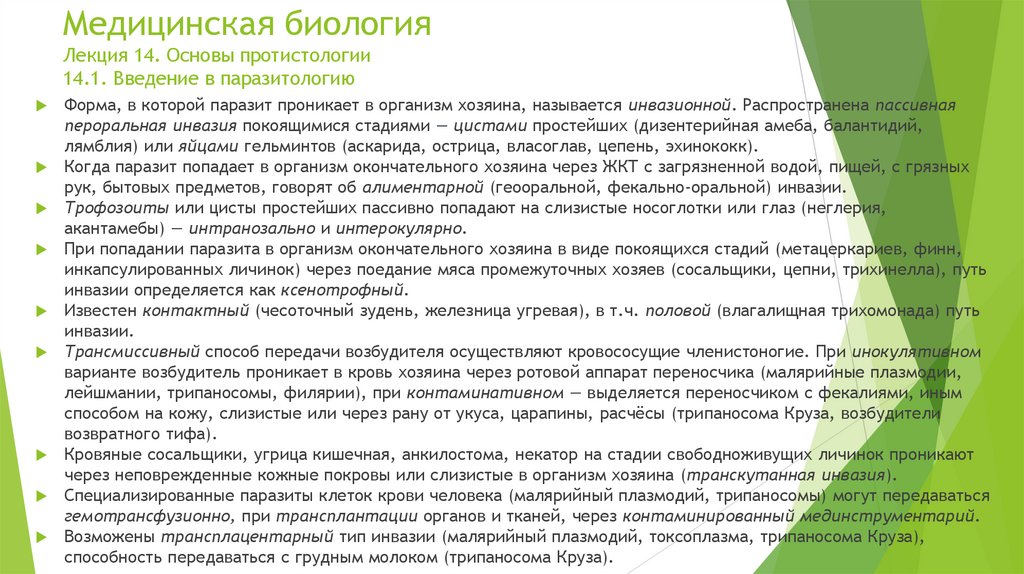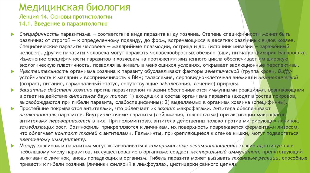 5. Медицинская биология Лекция 14. Основы протистологии 14.1. Введение в паразитологию