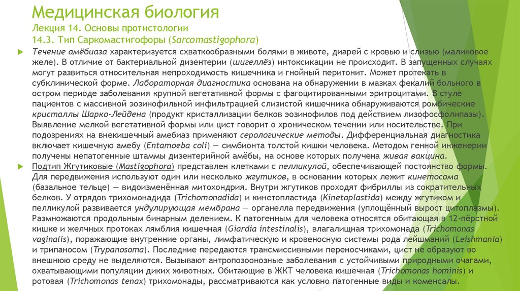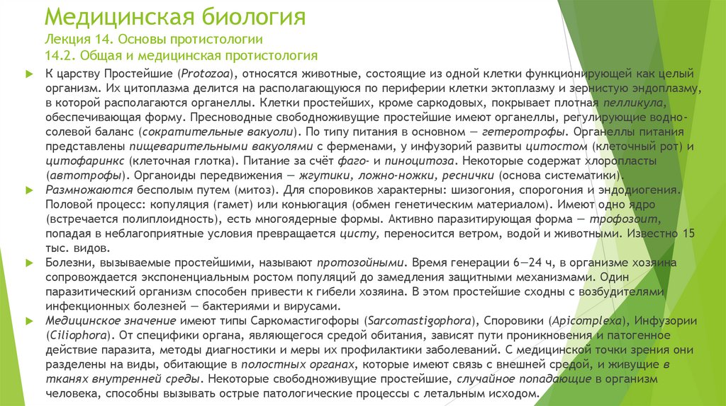 6. Медицинская биология Лекция 14. Основы протистологии 14.1. Введение в паразитологию