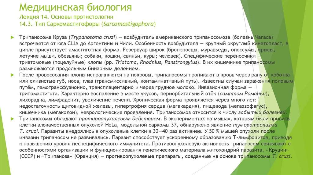 хронической форм, лабораторная диагностика и профилактика. Противоопухолевые свойства трипаносом.