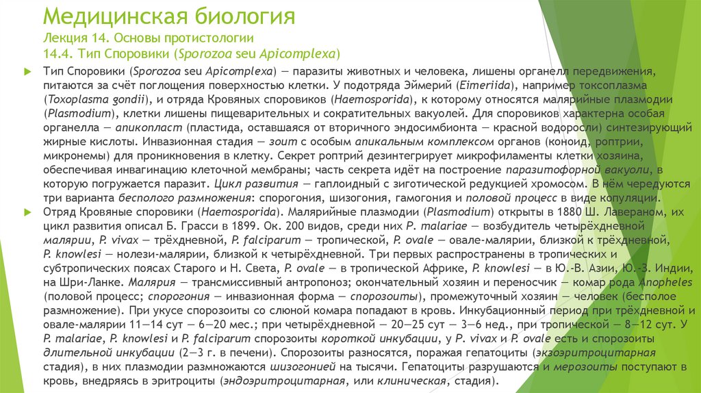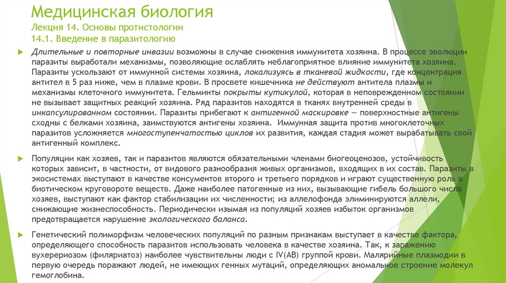 3. Медицинская биология Лекция 14. Основы протистологии 14.1. Введение в паразитологию