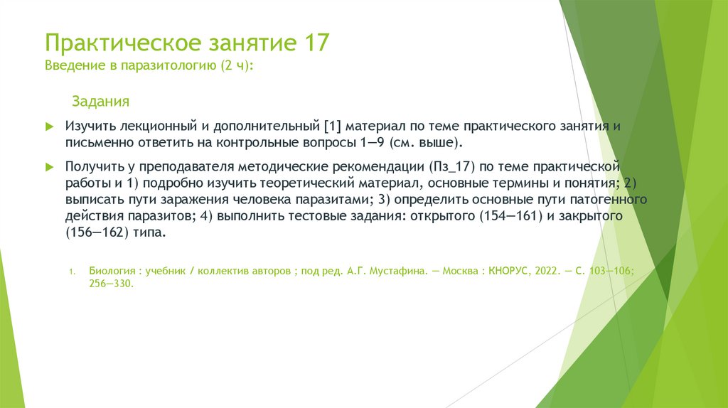 действия паразитов; 4) выполнить тестовые задания: открытого (154—161) и закрытого