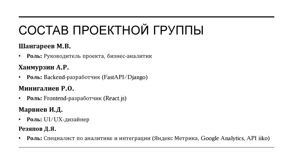 СОСТАВ ПРОЕКТНОЙ ГРУППЫШангареев М.В.