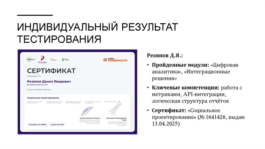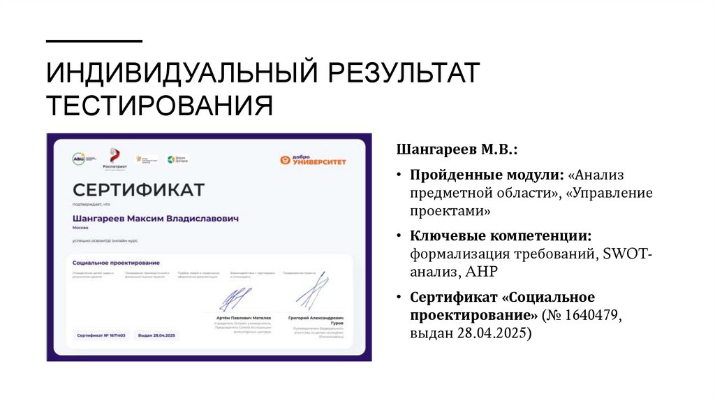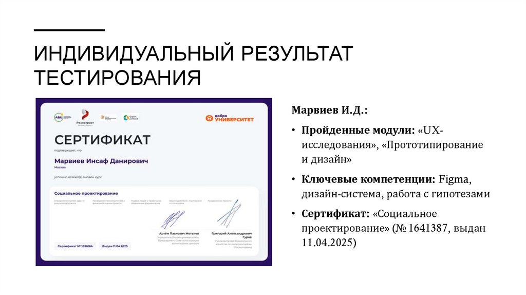 ИНДИВИДУАЛЬНЫЙ РЕЗУЛЬТАТТЕСТИРОВАНИЯ