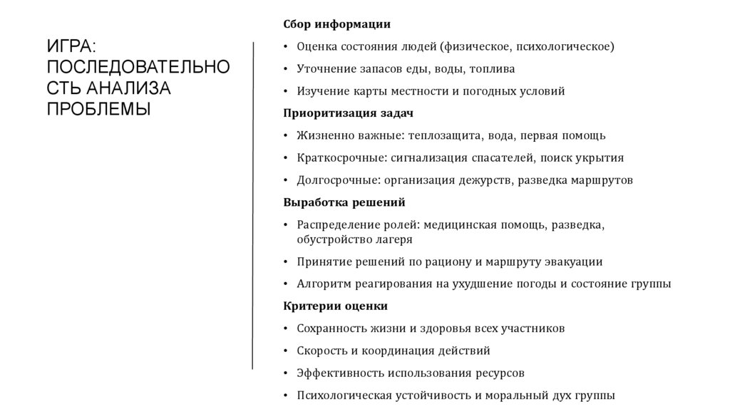 • Выявить алгоритм коллективного принятия решений в кризисной ситуации