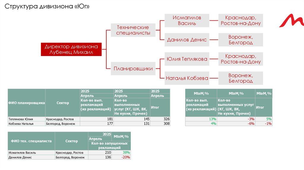 Отчёт директоров дивизиона «Юг». Итоги Апреля