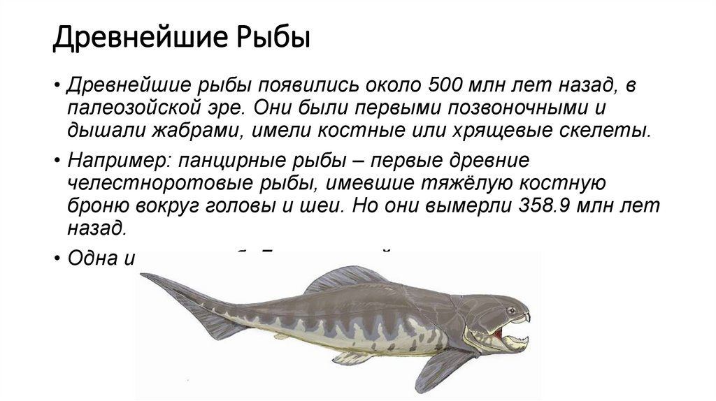 Древнейшие Рыбы• Древнейшие рыбы появились около 500 млн лет назад, в