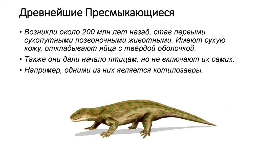 Древнейшие Пресмыкающиеся• Возникли около 200 млн лет назад, став первыми