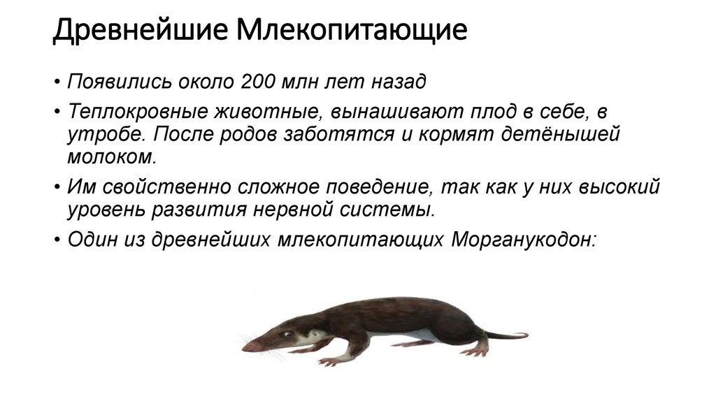 Древнейшие Млекопитающие• Появились около 200 млн лет назад