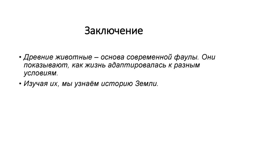 Заключение• Древние животные – основа современной фаулы. Они