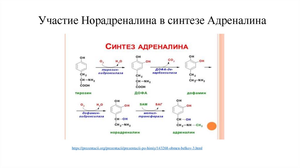 Участие Норадреналина в синтезе Адреналинаhttps://prezentacii.org/prezentacii/prezentacii-po-himiy/143268-obmen-belkov-3.html