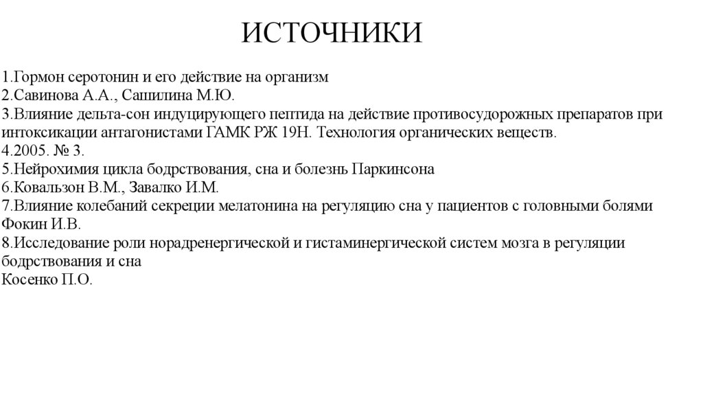 ИСТОЧНИКИ1.Гормон серотонин и его действие на организм