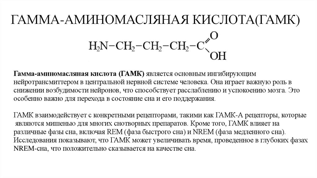 являются мишенью для многих снотворных препаратов. Кроме того, ГАМК влияет на