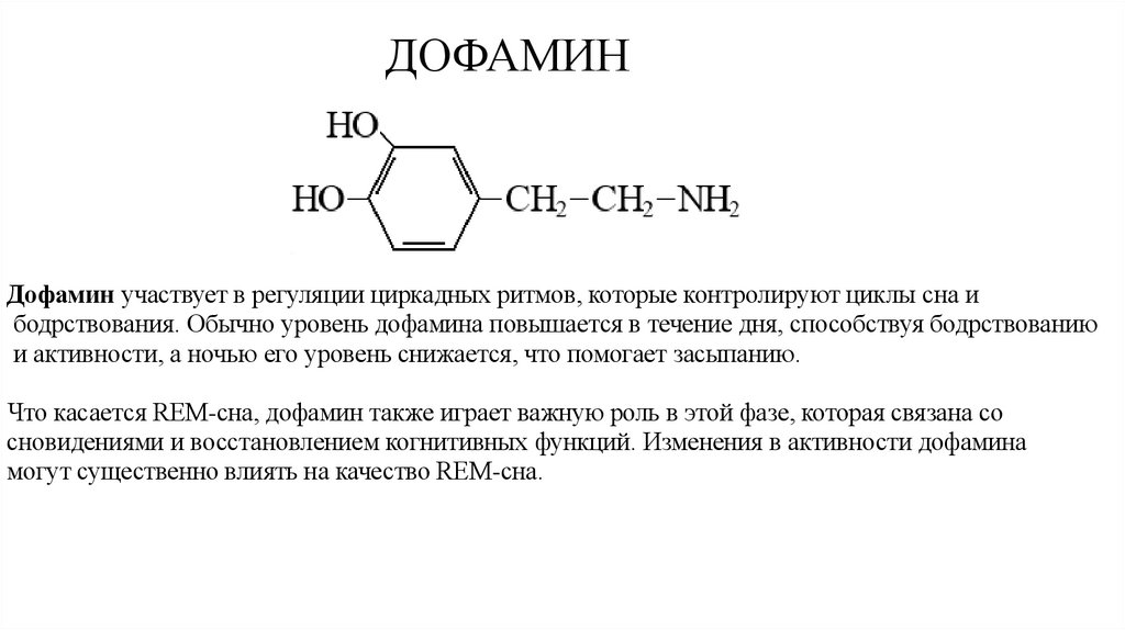 ДОФАМИНДофамин участвует в регуляции циркадных ритмов, которые контролируют циклы сна и