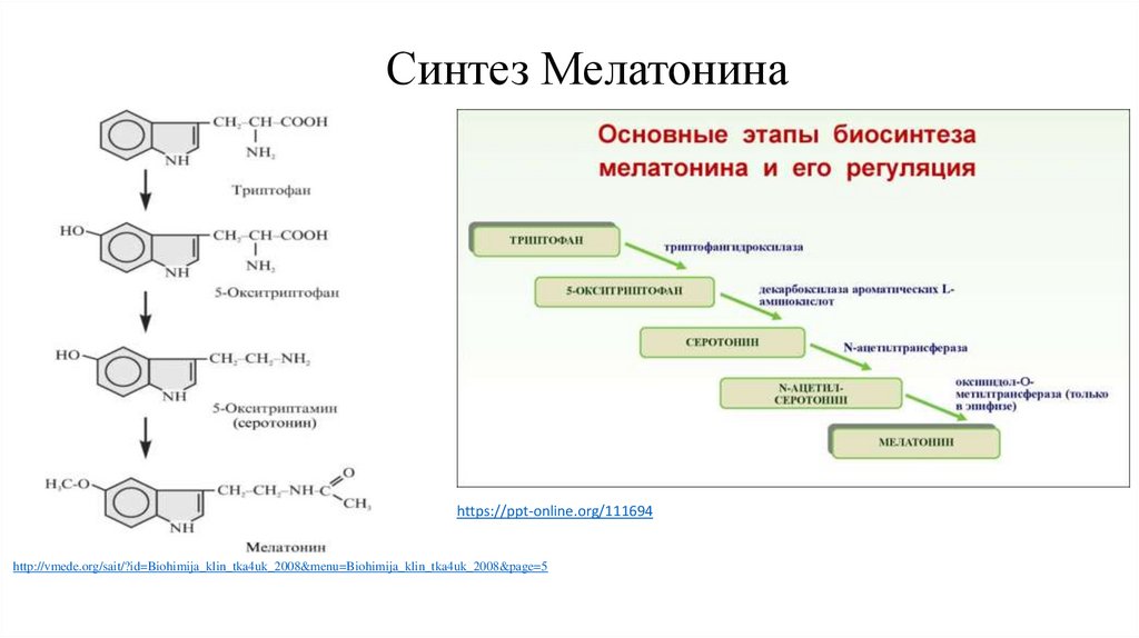 Синтез Мелатонинаhttps://ppt-online.org/111694