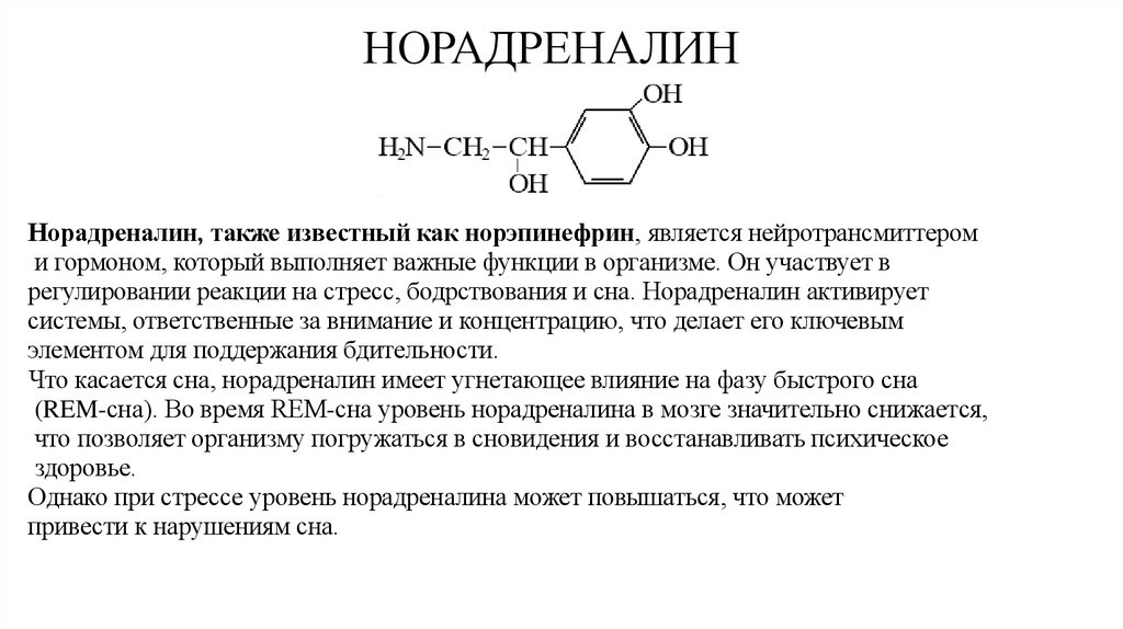 регулировании реакции на стресс, бодрствования и сна. Норадреналин активирует