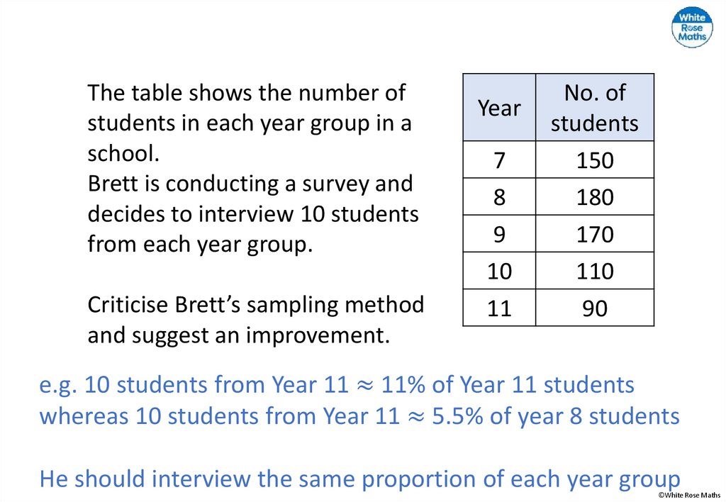 e.g. 10 students from Year 11 ≈ 11% of Year 11 students